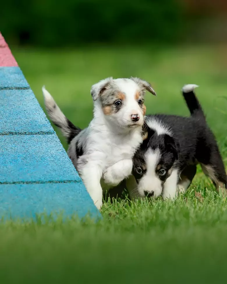 Die ersten ca. 16 Lebenswochen eines Welpen sind entscheidend für seine weitere Entwicklung, da sich in dieser Zeit positive wie auch negative Erfahrungen besonders einprägen. Versäumen Sie nicht diese wichtige Phase im Leben Ihres Hundes zu nutzen! In unseren Welpenstunden werden die Welpen mit verschiedenen Umweltreizen konfrontiert und lernen spielerisch Sozialkontakte zu knüpfen. Dabei achten wir darauf, dass die Welpen nicht überfordert werden. Die Welpenspielstunden bieten sich auch zur Therapie von Hundephobien bei Kindern und Erwachsenen an. Der Mensch kann sich sanft und einfühlsam mit Hundewelpen vertraut machen und seine Ängste abbauen.